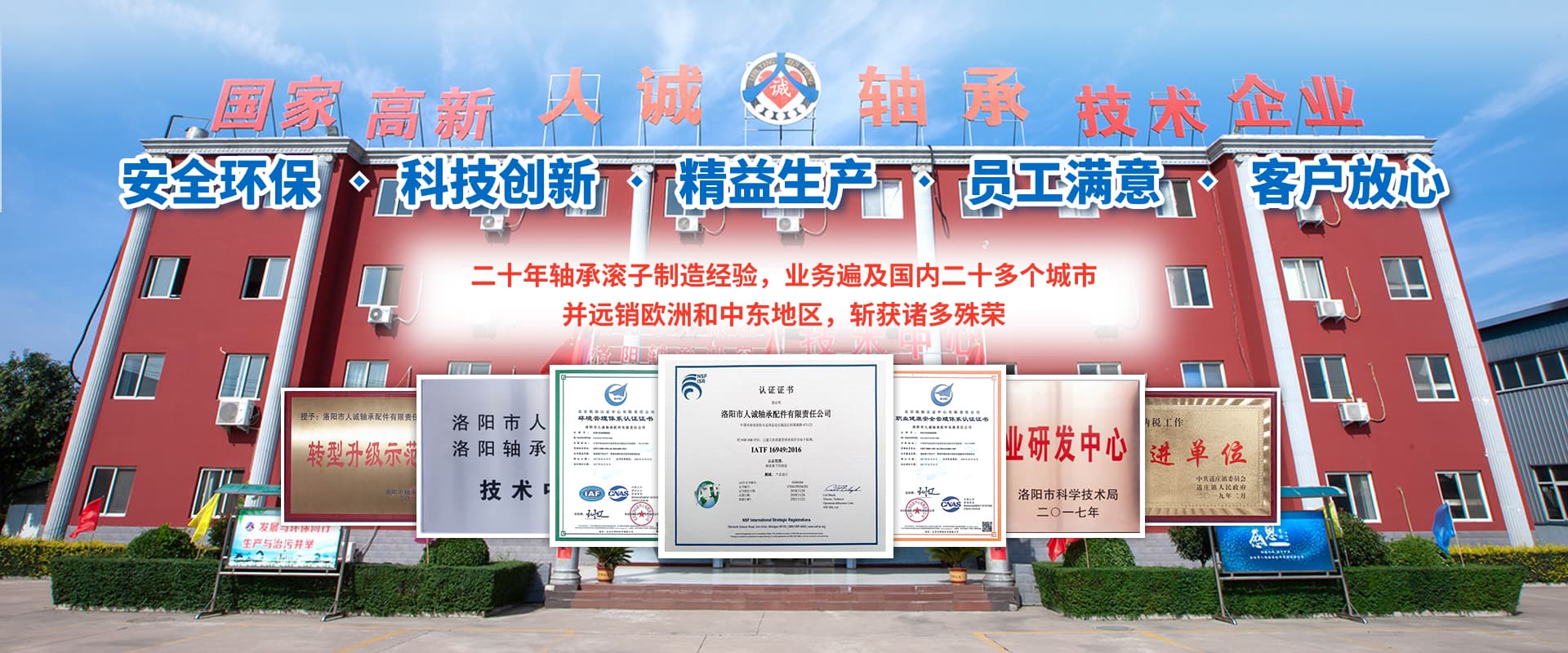 洛陽市人誠軸承配件有限責任公司成立于2003年,2015年由洛陽搬遷至孟津循環(huán)經濟區送莊鎮梁新路,占地60畝,建筑面積20000余平方米。公司專注生產高精圓錐軸承滾子,可根據客戶需求研發(fā)及來樣加工,年產精品滾子4億粒。 我們始終堅持“安全環(huán)保、科技創(chuàng)新、精益生產、員工滿意、客戶放心”的經營理念。先后與河南科技大學、洛陽師范學院、方智測控合作,并與國家洛陽軸承研究所聯合成立“技術中心”,建立了良好的產學研合作機制,為公司的創(chuàng)新發(fā)展打下了堅實的基礎。 2018年公司被認定為國家高新 技術企業,通過了IATF16949:2016質量管理體系、環(huán)境管理體系、職業健康安全管理體系、知識產權管理體系等多項認證。擁有完善的檢測手段,先進的工藝,穩(wěn)定的設備,優(yōu)良的服務。公司董事長葉會卿為洛陽市工商聯副主席,洛陽市軸承滾子行業協會會長,法人李愛芳女士從事軸承滾子制造30余年,積累了豐富的生產管理經驗,誠實守信、務實、合作、共贏的作風深受業界好評。